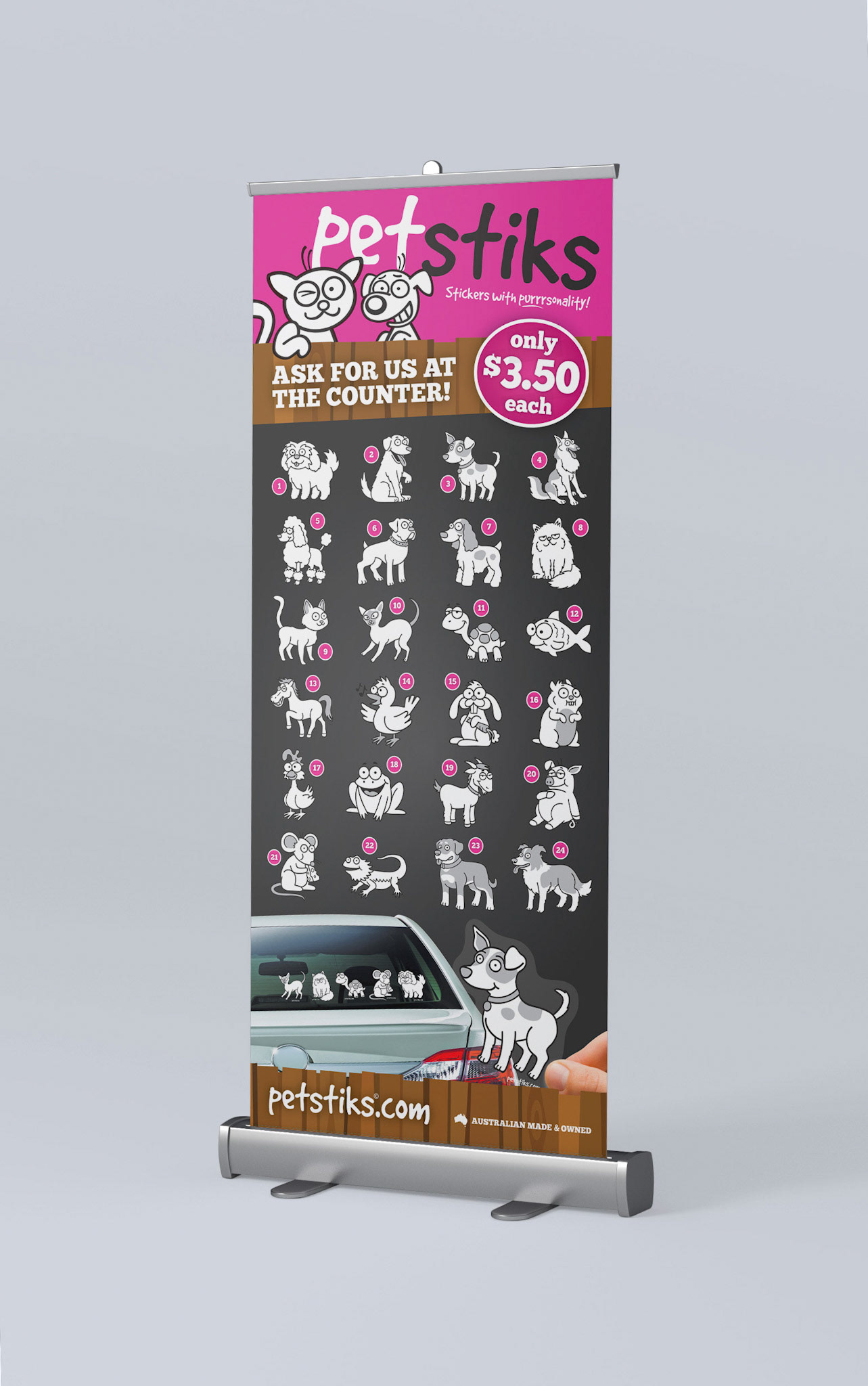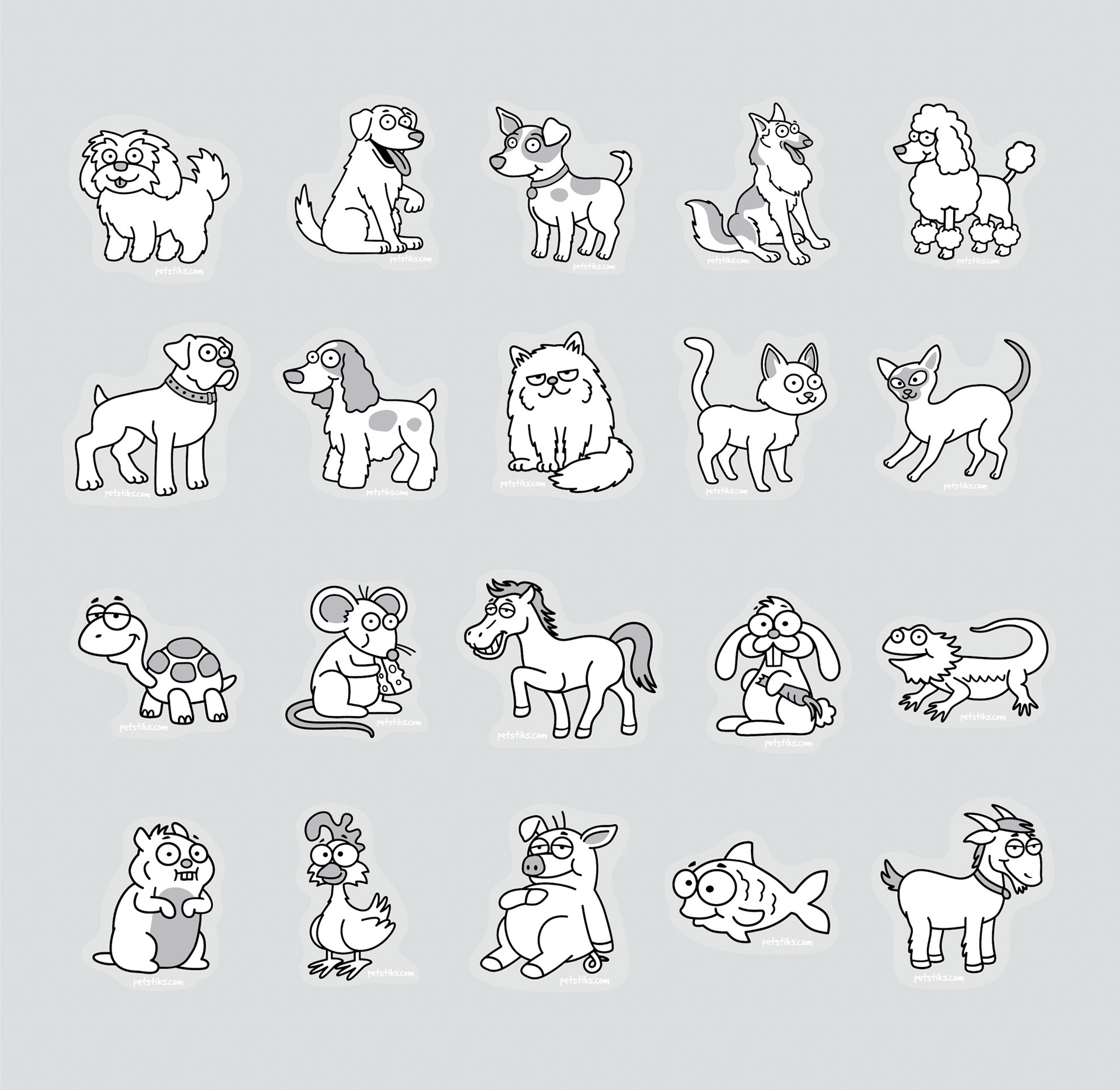 Self-initiated project, sticker range of 24 animal characters, including 7 of the most popular dog breeds, 3 cats and 14 other cartoon animal designs.